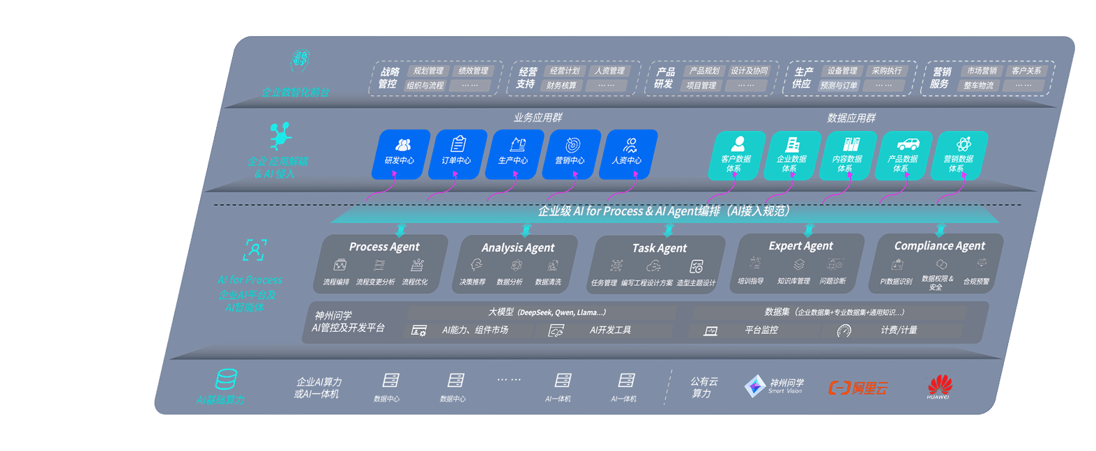 端到端的一站式AI工作空间深度融合了从企业战略规划到日常经营的全流程业务板块,,,定向解决车企内部领域多、、、、部门多、、链条长、、场景碎片化等难题,,,,支持车企快速构建以AI为核心的生产力写作体系,,,,实现任务执行与AI能力的无缝集成与交互